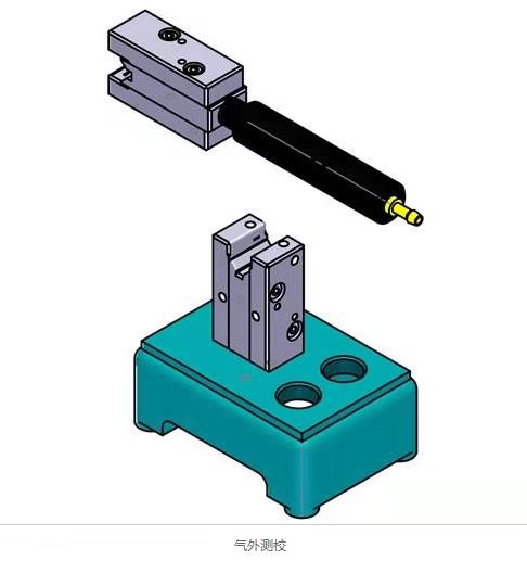 測校的標準外徑測量頭既能測出被測件的外徑誤差值,而且還可以測量其錐度和圓度。被測件由定位塊上的V型面定位,氣體從左、右噴咀體上的對向噴咀噴出,即可從量儀上指示出外徑的誤差值。也可象內(nèi)徑測量頭一樣,將被測件沿其軸向移動或轉動,測出錐度或圓度。